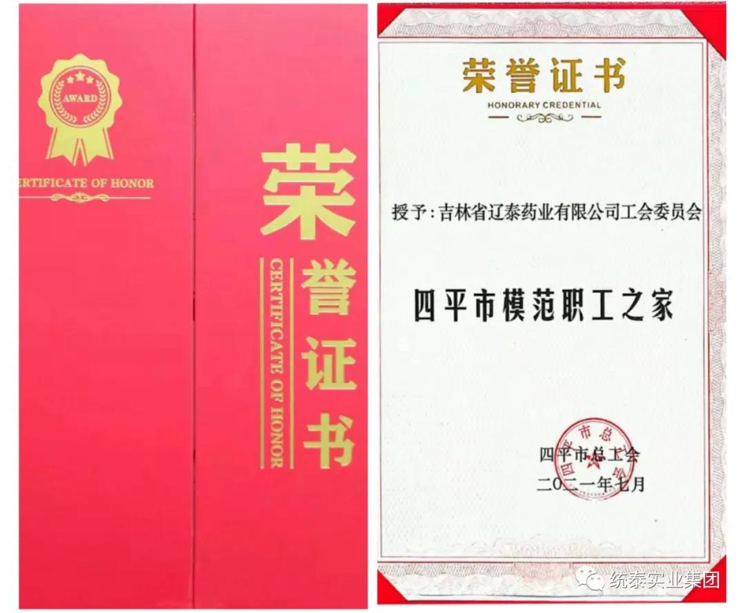 近日,吉林省辽泰药业有限公司工会委员会获“四平市模范职工之家”荣誉称号,并获得1万元人民币奖励。本荣誉称号由四平市总工会设立,是四平市工会系统表彰先进集体的最高荣誉。