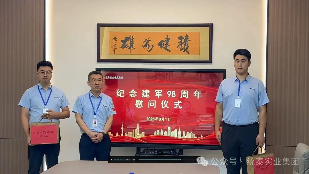 今天的会议恰逢建军98周年纪念日,集团积极发扬拥军优属的光荣传统,专门组织了对退伍军人的“慰问仪式”。仪式上,杨棣董事长发表了热情洋溢的讲话,对集团全体退伍军人致以节日的问候,对他们在集团的努力和贡献给予肯定,并对大家今后的工作提出新的要求。之后,杨棣董事长亲自为大家颁发了纪念品,集团党委专职副书记王洪利代表退伍军人作了发言