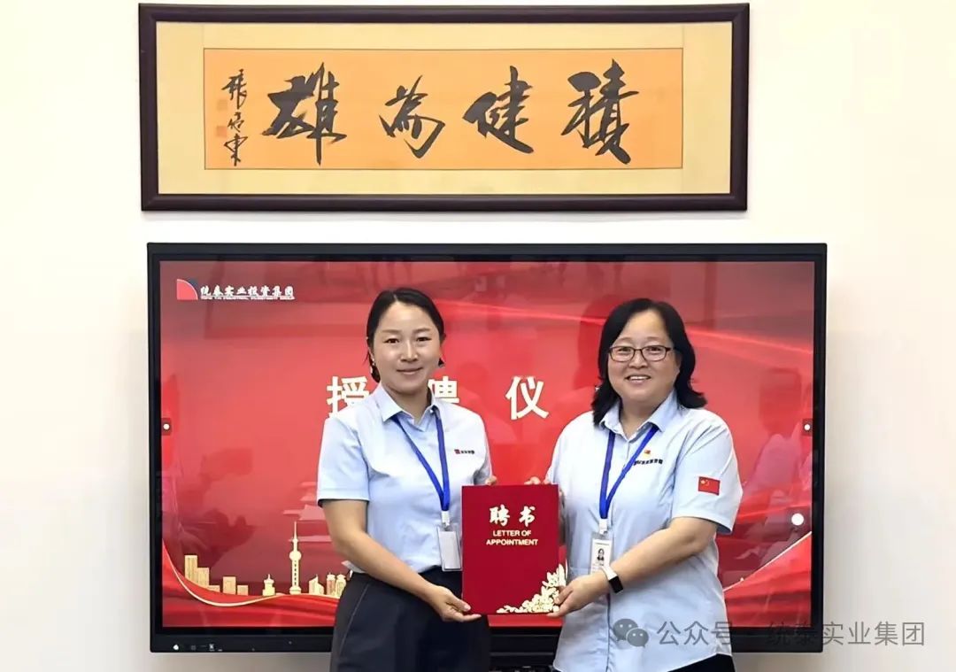 图三:集团工业板块首席官曲艳梅(右一)给长春中医药大学杜雪娇教授(左一)颁发聘书。