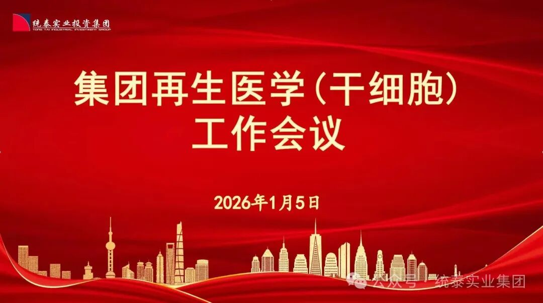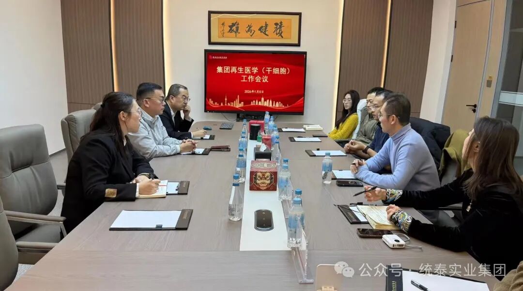 为深化生物科技领域产学研协同创新,加速新质生产力培育落地,2026年1月5日,统泰集团董事长杨棣亲自主持召开集团再生医学(干细胞)工作专题会议。会议特邀吉林大学第三附属医院尹飞教授科技团队、吉林新海生物科技开发有限公司亓爱杰总监研发团队出席,大家围绕干细胞技术研发、产学研合作模式创新及生物科技产业高质量发展等核心议题深入研讨,为集团新元板块业务开展锚定方向、筑牢科创根基。
