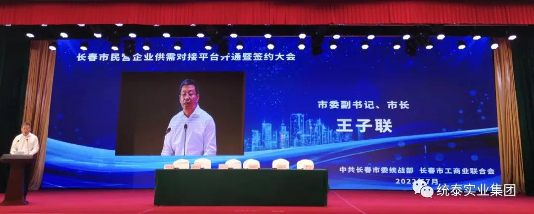 为深入贯彻落实党中央、国务院推进社会发展工作相关决策部署,长春市委统战部、市工商联组织建立了长春市民营企业供需对接平台,为我市民营企业提供更高效的服务。2022年7月6日为平台签约大会,优秀民营企业、市工商联副主席、统泰集团董事长杨棣应邀莅临会议。会议由市委统战部副部长、市工商联党组书记任宏雷主持,其间由长春市委副书记、市长王子联及市工商联主席、副主席等领导分别发表了讲话,盼景平台服务企业,企业借平台稳步发展。